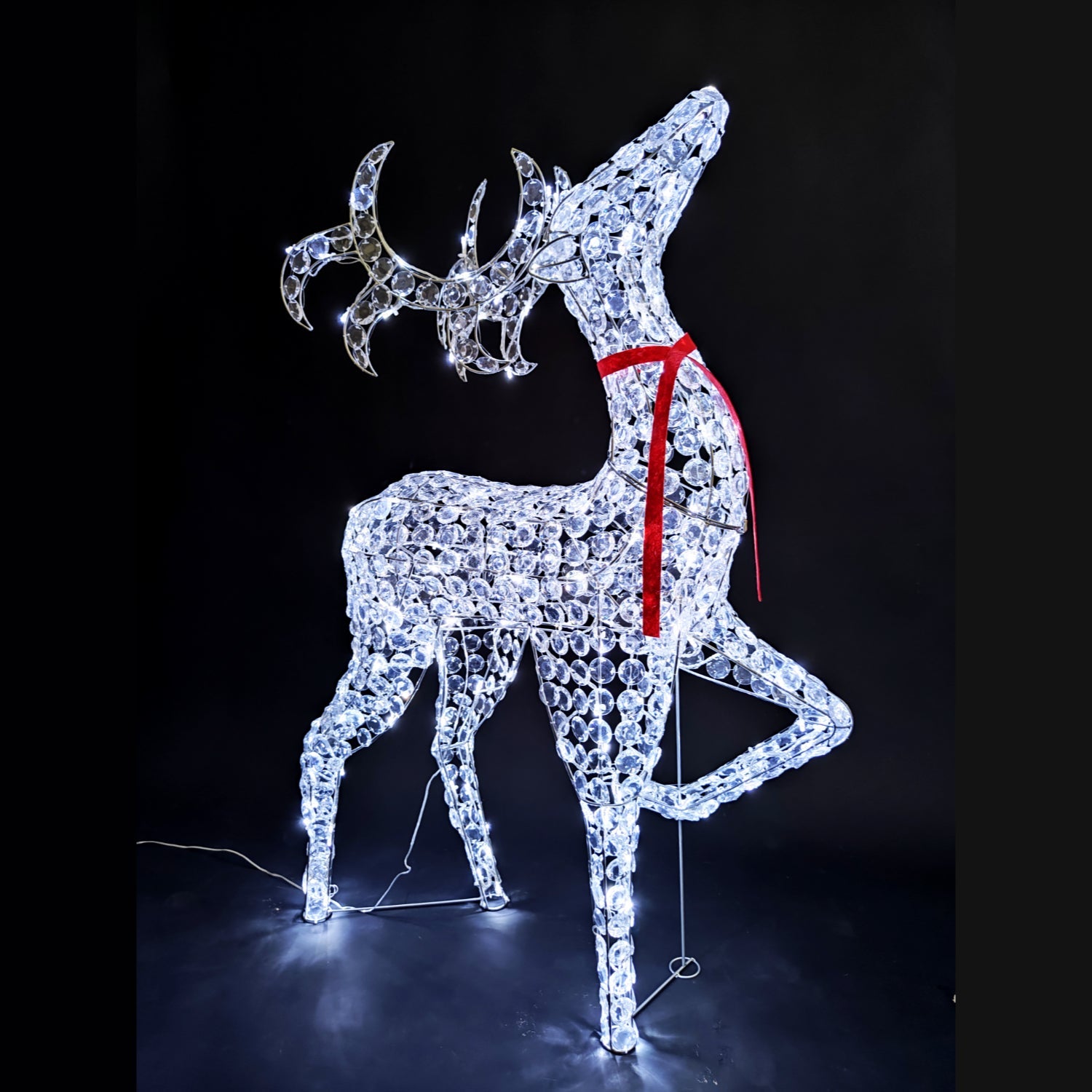 Christmas Decoration 3D Crystal Beads Standing Reindeer Buck Red Ribbon 122cm LED Display Indoor/Outdoor